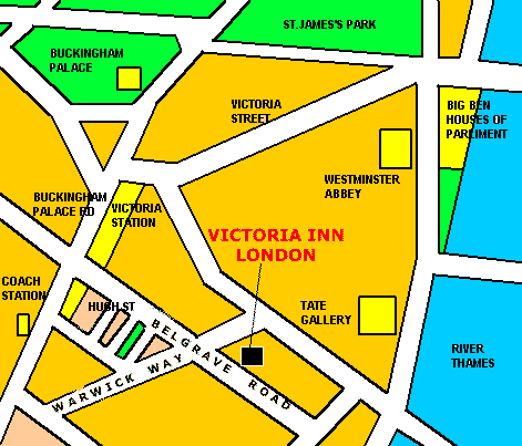 | Welcome to the Victoria Inn London offering comfortable budget accommodation in Central London. The hotel is conveniently situated close to Victoria Underground, Railway and Coach Stations. British Airways Terminal and Gatwick Express are both at Victoria. Surrounded by London's top tourist attractions such as Buckingham Palace, Houses of Parliament, London Eye, Westminster Abbey, Tate Modern, Tate Gallery and some famous Theatres and a wide range of restaurants are all within walking distance. | |||